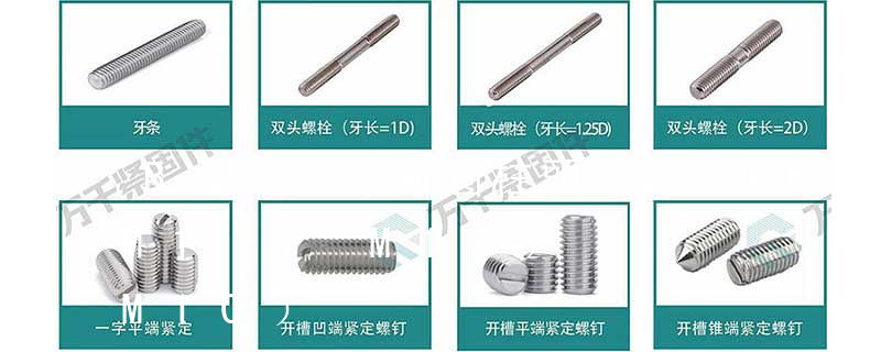 內六角 (錐端 平端 凹端 圓柱)方頭(長圓柱球面 凹端 長圓柱 短圓柱 平端 )C.定位螺釘 (M1.6~M12)開槽(錐端 圓柱端 盤頭 圓柱頭 球面圓柱頭)D.不脫出螺釘 (M3~M16)開槽 (盤頭 沉頭 半沉頭)六角